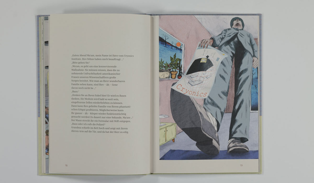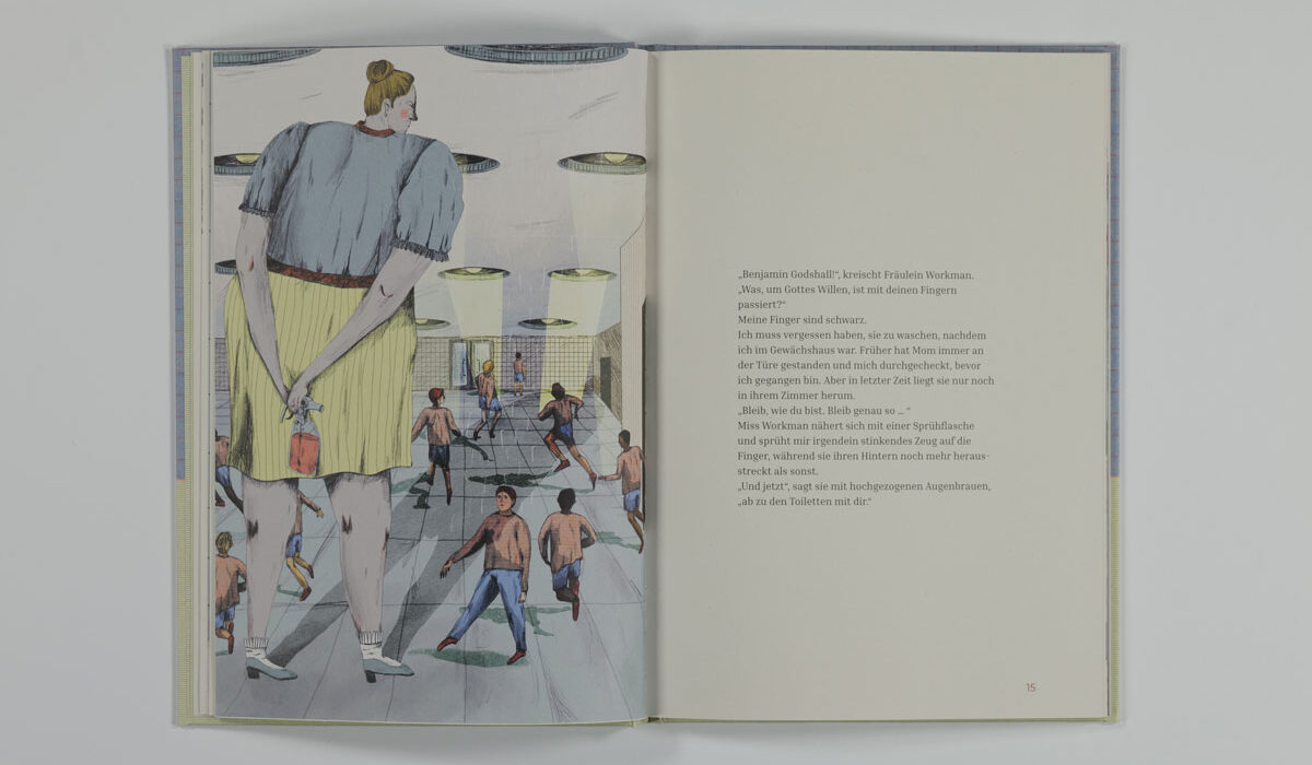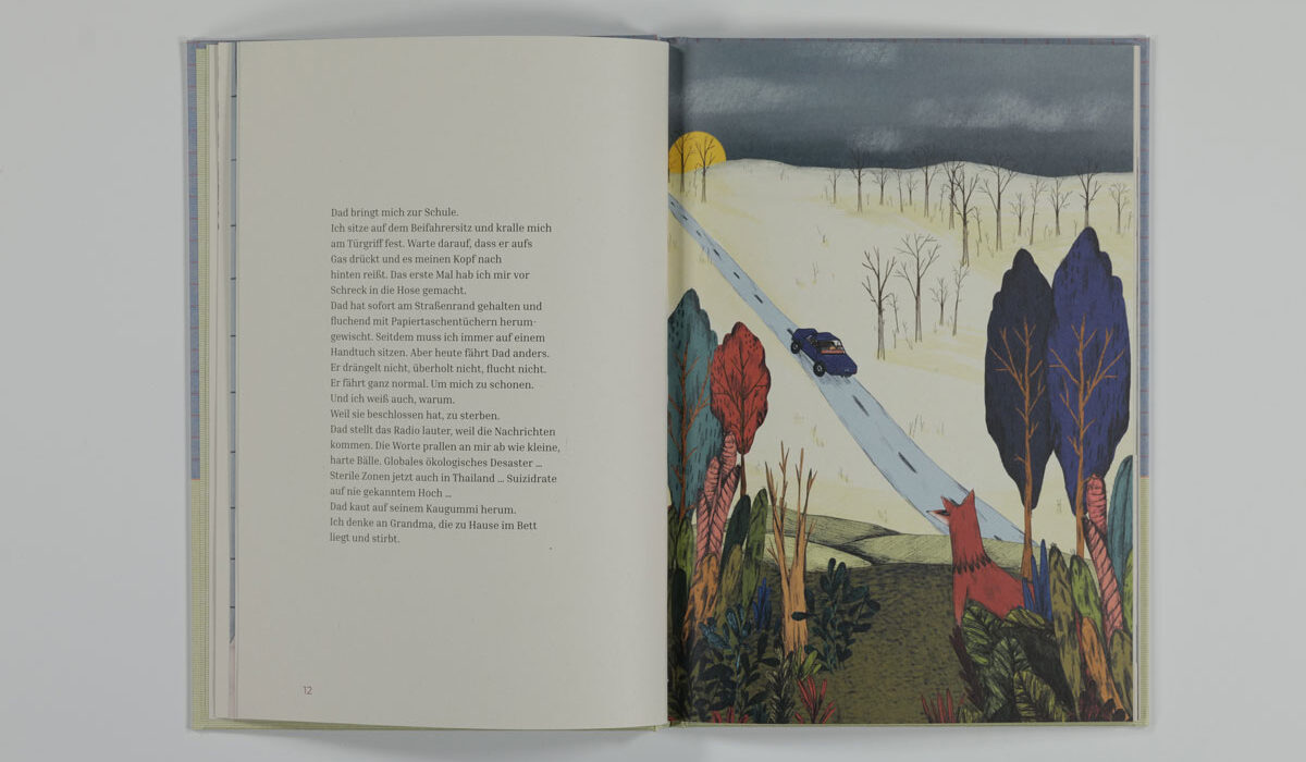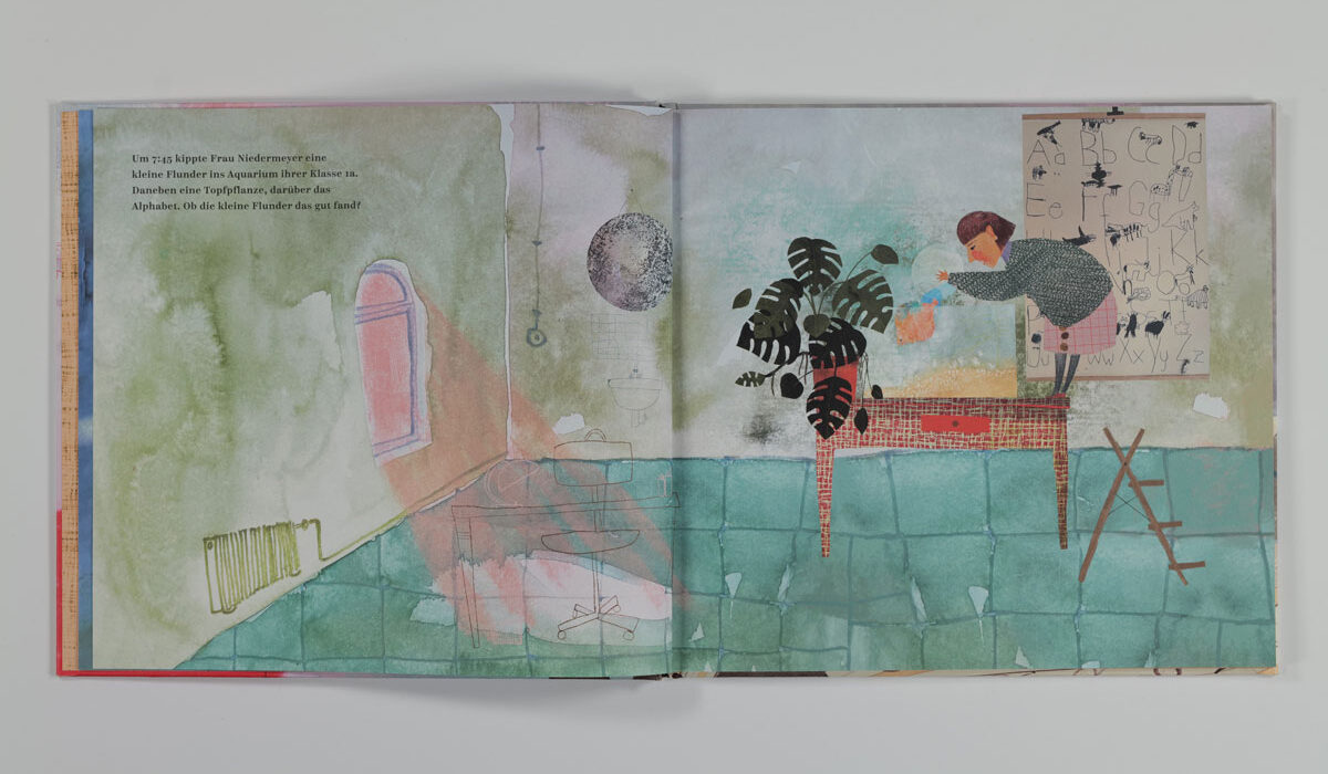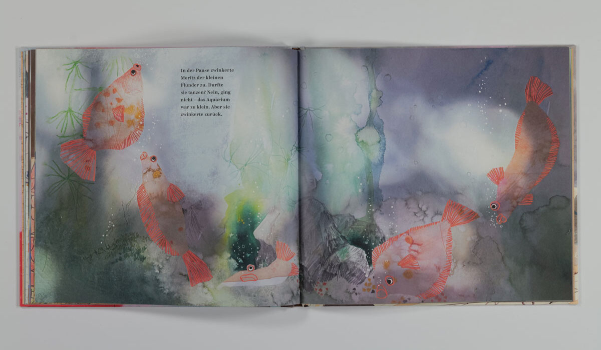 Nie wieder Frühling Sarah Knausenberger & Kerstin Marie Backes (Ill.) Text: Kirsten Winderlich Fotos: Sophia Ashraf und Lucia Leonhardt Ein Junge und seine Großmutter, eine tote Welt und eine stumme Familie. Wie tragisch, dass die Großmutter, die Ben als Einzige in einer sich zunehmend verrohenden Gesellschaft Halt gibt, sterben wird. »Nie wieder Frühling« ist eine dystopische Geschichte, die Sarah Knausenberger meisterhaft aus der Perspektive von Ben erzählt und Kerstin Marie Backes mit kolorierten Zeichnungen wie Collagekunst kongenial ins Bild setzt. Ihre Bilder spielen dabei mit Perspektivwechseln und Kontrasten zwischen Innen und Außen, der lebendigen Welt der Großmutter, in der Pflanzen gedeihen und der stumpfen wie farblosen Außenwelt, für die es keine Jahreszeiten mehr gibt. Was passiert mit alten Menschen in einer Welt, in der alle erstarren, sich ausschließlich um ihr unglückliches Selbst drehen, in der es keine Empathie und Zuversicht mehr gibt? Nachdem die Großmutter einen Platz im Pflegeheim verweigert, dessen Name »Shady Acres« für sich spricht, stehen kurz vor ihrem Ableben Mitarbeitende eines Kryokonservierungsinstitut vor der Tür. Nicht nur respektlos, sondern energisch und entschlossen, treten sie den Wunsch der Großmutter, wie das Bild des überdimensionierten Schrittes eines Mannes in graublauem Anzug und Hut aus der Froschperspektive symbolisiert, »mit den […] Read More › Das Wunder der Flunder