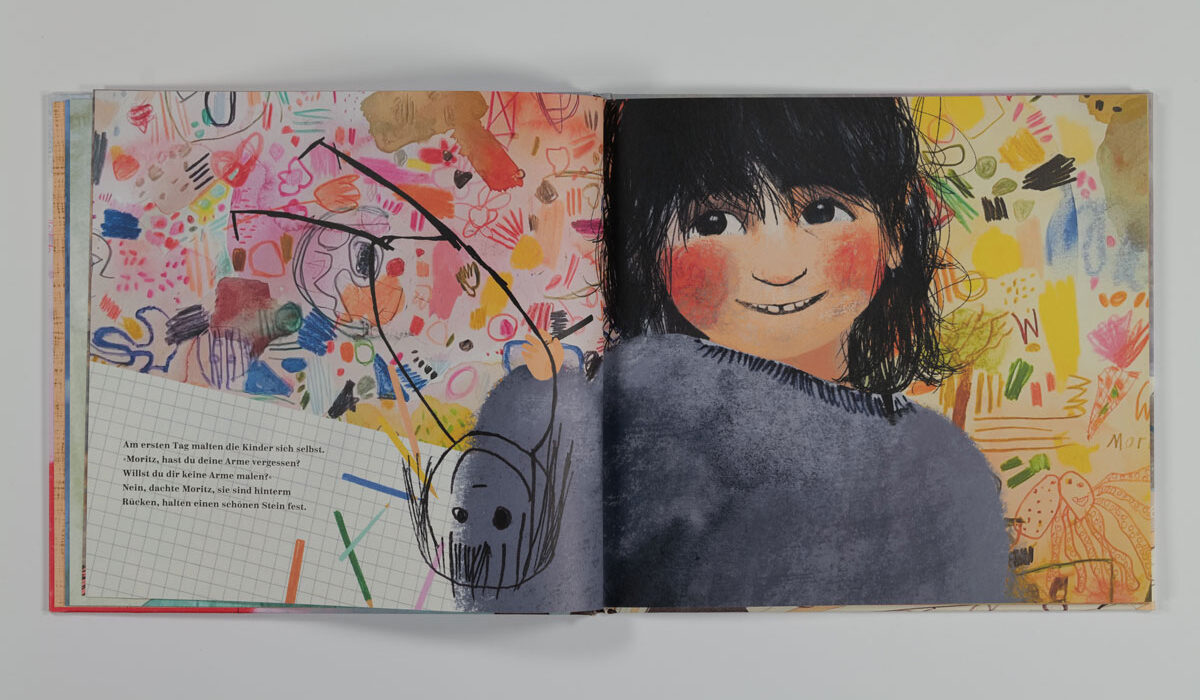 Text: Kirsten Winderlich Repros: Elisa Bauer Dass man in der Schule nur lernen kann, wenn man sich wohlfühlt, weiß jedes Kind. Dass Klassen- und Schulgemeinschaft ohne das Engagement der Schülerinnen und Schüler, der Lehrkräfte, Eltern, Hausmeister und Sekretärinnen nicht gelebt werden kann, wollen viele nicht wissen. Warum wird nicht mehr dafür getan, dass sich Kinder in der Schule an- und aufgenommen fühlen? Warum wird zugelassen, dass Kinder ausgeschlossen und gedemütigt werden? Und warum haben so viele Kinder Angst, Diskriminierungen unmittelbar zu begegnen? Britta Teckentrup konfrontiert uns in ihrem Bilderbuch nicht nur mit dem Mikrokosmos Schule, in dem Ausgrenzung und Mobbing an der Tagesordnung sind, sondern führt uns mit ihrer Erzählerin, einer Schülerin, vor, wie den Kindern mit Einfühlungsvermögen und Wahrnehmungsfähigkeit, Offenheit und Toleranz, Engagement und Mut so begegnet werden kann, dass alle Stärkung und letztlich Bildung erfahren können. Ob Schule nicht nur ein Aufenthaltsort, sondern auch ein würdiger Lebensort sein kann, hängt von den Menschen ab, die diesen Ort tagtäglich betreten. Entsprechend fokussiert die Künstlerin mit ihren analog wie digital produzierten Collagen aus divers bedruckten Papieren Mimik, Blicke und Körperhaltungen. So können wir wahrnehmen, wie Max allein auf dem Schulhof sitzt, den Blick gesenkt hält und die Arme angespannt an […] Read More ›