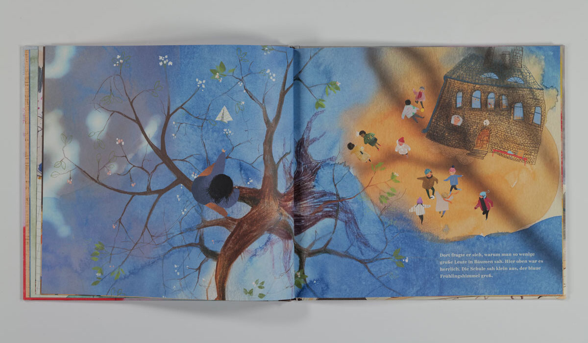 Text: Kirsten Winderlich Repros: Elisa Bauer Kaum merkbar schlängelt sich ein Fluss vor der riesigen, schneebedeckten Gebirgskette ins Bild. Blau leuchtende Fische gleiten über die Steine auf seinem Grund. „Der Brusturka fließt durch das ganze karpatische Dorf Brusturiv. Für die Kinder und Kühe ist er das beliebteste Versteck im Sommer. Hier ist ihr Reich. Hier findet sie keiner.“ Was wie eine Idylle anmutet, ist ambivalent. Im Bilderbuch „Zug der Fische“ erzählen Yaroslava Black und Ulrike Jänichen die Geschichte von Kindern in der Ukraine, die den Alltag und ihr Überleben ohne Eltern sichern müssen. So auch Marika. Ihre Mutter arbeitet in Italien und kommt auch dieses Weihnachten nicht nach Hause. „Sie sagt, sie muss Geld sparen und wird Marika durch Western Union ein paar große Geld- scheine schicken.“ Das Geld, das die Eltern ihren Kindern aus der Ferne schicken, ist meist der größte Teil des Familieneinkommens, schreibt der Journalist Keno Verseck in seinem Nachwort. Die Eltern sind also nicht verantwortungslos und lassen ihre Kinder nicht ohne Grund allein. „Das wissen die Kinder. Und das ist vielleicht auch, was sie am meisten zerreißt: Die große Sehnsucht nach den Eltern begleitet sie ständig, sie ist eines der Grundgefühle im Alltag. Gleichzeitig sollen sie […] Read More › Die Schule
