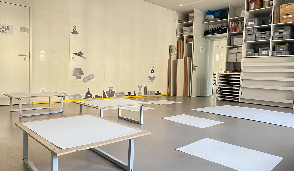 Schaut, ein Elefant! Oder: Über Teilhabe durch Transformation Text: Kirsten Winderlich Repros: Elisa Bauer Fotos: Sophia Ashraf, Elisa Bauer, Helen Naujoks Was für ein Elefanten-Tier: Königsblau, große offen-wachsame Ohren und rührend weiße Mini-Murmel-Augen! Und wie akrobatisch biegsam der scherenschnittartige Körper ist! Liegt es daran, dass auch der Rüssel sich als Spielbein outet? Also schaut dem Elefanten zu! Als ihm die Tränen nur so kullern, bemerken wir erst, dass er in einem Zirkus eingesperrt ist. Wir schauen dem Illustrator Jakub Plachý dabei zu, wie er ihm hilft, aus dem Käfig zu entkommen, und für diesen Akt Strich für Strich die Gitterstäbe wegradiert. Dann folgt der Einzug auf das Fußballfeld. Spielt der Elefant doch so gerne mit dem Ball: Mal hält er ihn zwischen den Beinen, mal übernimmt sein Rüssel die Ballkontrolle, ein anderes Mal übt er sich im Kopfball. Im Stadion erwartet ihn schon seine Mannschaft, alles Elefanten und alle braun koloriert, aber ebenso beweglich wie er. Am Anfang scheint alles gut zu laufen, der königsblaue Elefant wird eingewechselt, brilliert durch einen beachtlichen Pass und glänzt im Abspiel. Aber dann … Er bremst ab. »… Das Spielfeld ist einfach zu groß für ihn«. Während die Spieler sich beraten, robbt sich der […] Read More › BEATRICE ALEMAGNA ZU GAST IN DER GRUNDSCHULE DER KÜNSTE
