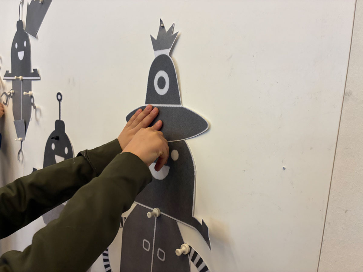 Bewegung ist ein zentrales Moment des Bilderbuches: die robotische wie die dynamisch-experimentelle. Um für diese zu sensibilisieren, kann ein Einfühlen und Nachahmen robotischer Bewegung durch einen Performer und Live-Vertonung initiiert werden.