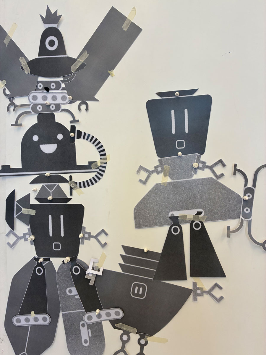 – Hochkopieren ausgewählter Roboter in Schwarz-Weiß auf festem Papier