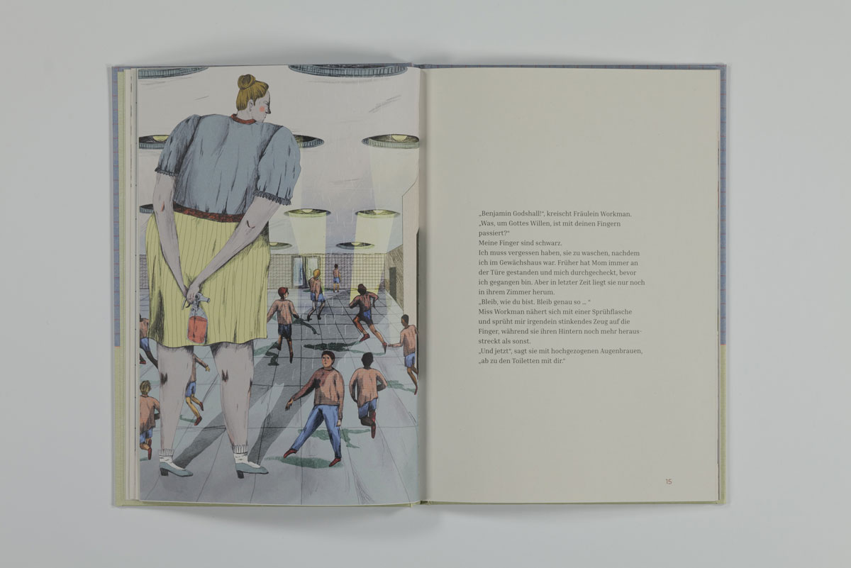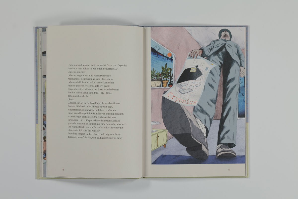 48 Seiten, Bleistiftzeichnung und Kohle, digitale Koloration und Collagekunst